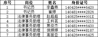 根据威廉体育人力资源公司于2022年3月21日发布的《长治市黎城县人民法院2022年招聘司法辅助人员公告》的相关要求,入围体检及储备库人员名单如下: