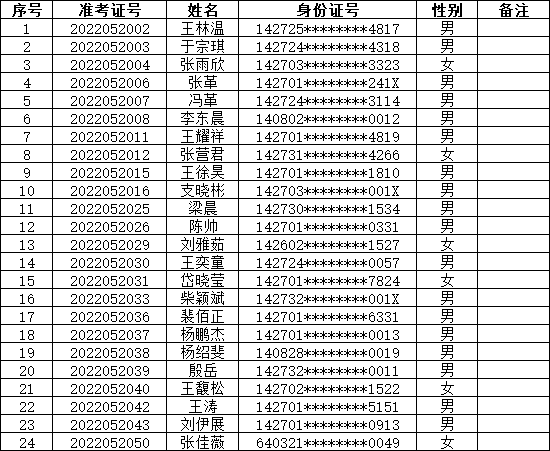 二、入围面试人员名单(根据准考证号排名)