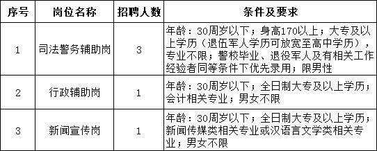 司法警务辅助岗学历专业要求:退伍军人学历可放宽至高中学历。
