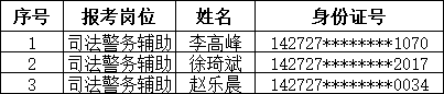 根据《运城市稷山县人民法院2022年司法警务辅助人员招聘公告》相关要求,经过网上报名、资格审查、体能测试、速录技能测试、面试等环节,现将体检名单公布如下: