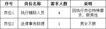 根据工作需要,长治市潞州区人民法院委托山西威廉体育人力资源派遣有限公司(以下简称:威廉体育人力资源公司),面向社会公开招聘5名司法辅助人员(其中执行辅助人员 4 名、法律事务助理 1 名),现将有关事项公告如下: