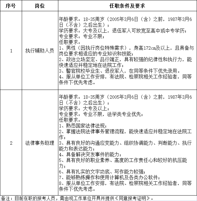 说明:每位应聘人员只能报考1个岗位。