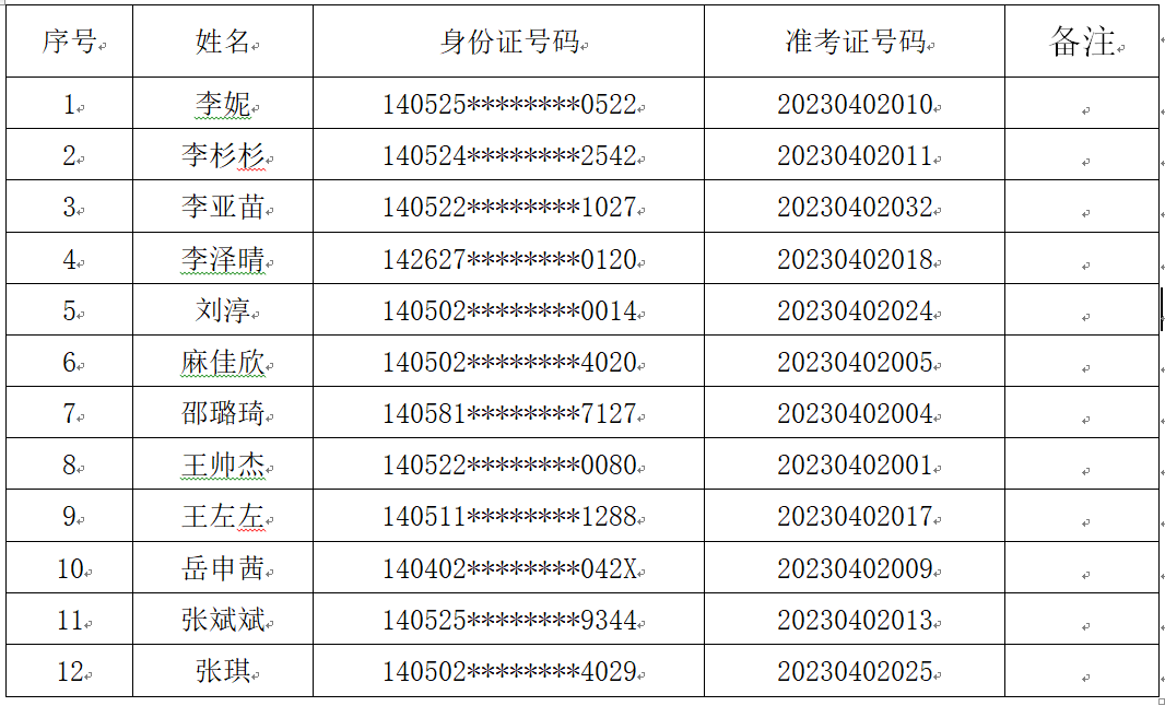 二、入围面试名单(排名不分先后顺序)