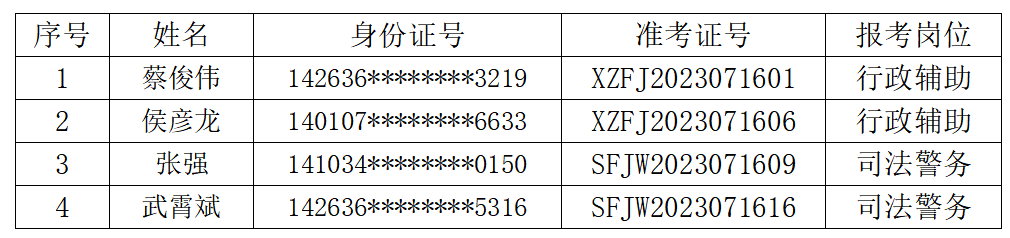 根据《临汾市汾西县人民法院2023年司法辅助人员招聘公告》相关要求,经过网上报名、资格审查、初试、面试等环节,现就成绩查询及体检有关事项通知如下: