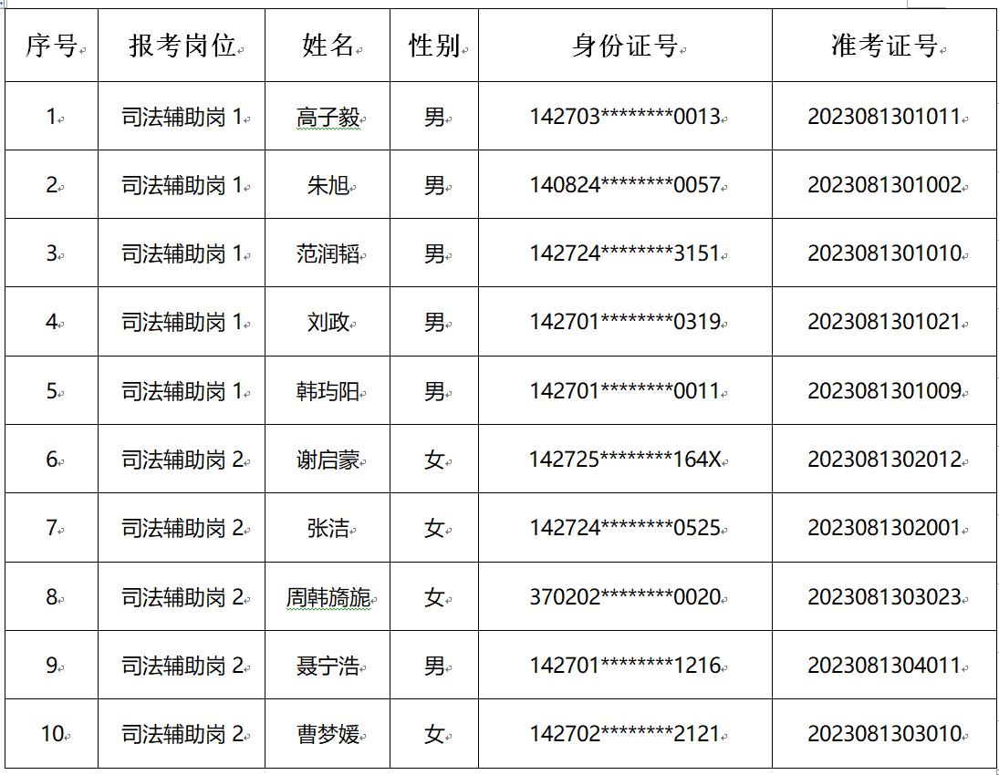 根据《运城市盐湖区人民法院2023年司法辅助人员招聘公告》相关要求,经过网上报名、资格审查、笔试、速录及面试环节,现就成绩查询及体检有关事项通知如下: