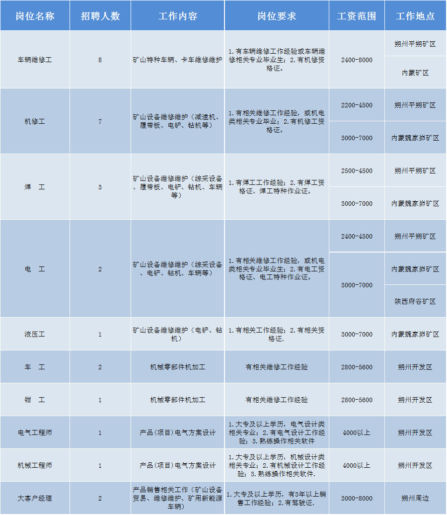 工作地点见《岗位要求及待遇表》。