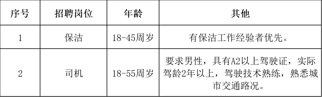 (一)保洁岗位: