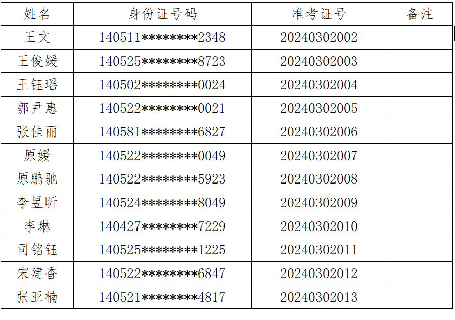 二、入围面试名单(排名不分先后顺序)