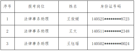 根据晋城市城区人民法院招聘3名法律事务助理及3名储备人员公告相关要求,经过网上报名、资格初审、笔试、资格复审、面试等环节,现就体检有关事项通知如下: