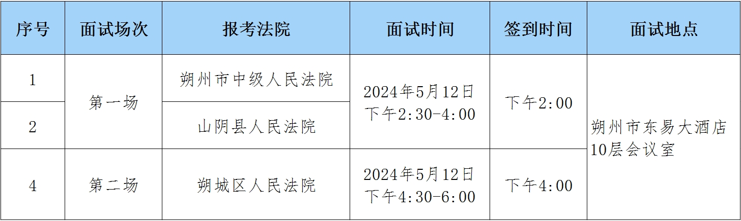 根据《朔州市两级人民法院2024年公开招聘司法辅助人员公告》的相关要求,经网上报名、资格审查、理论考试、体能测试等环节,现就面试有关事项通知如下: