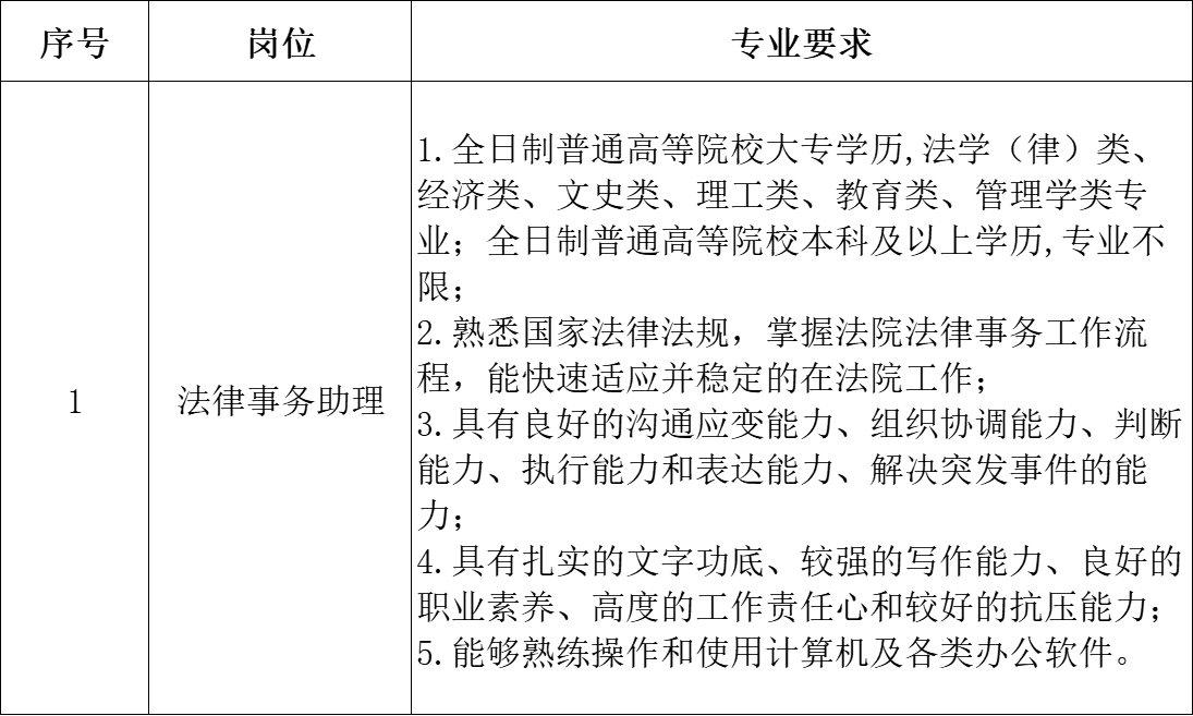 5.服从工作安排,具有法院岗位工作经验者优先录用;