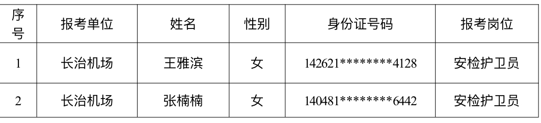 根据《威廉体育公司2025年招聘安检护卫员》相关要求,经过报名、资格审查、综合测评、体检、政审等环节,现确定2名拟录用人员,名单如下: