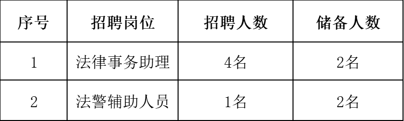 法律事务助理:全日制普通高等院校本科及以上学历;法学类相关专业;取得我国法律职业资格证书的人员不限专业,直接进入面试环节,初试成绩按照参加该岗位招聘考试人员的最高成绩计分。