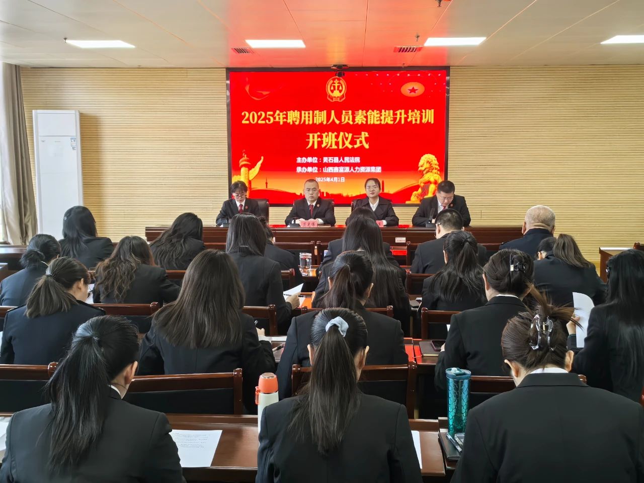 为进一步提升聘用制人员的综合素质,补齐能力短板,更好应对工作中的各种挑战,为法院审判事业赋能增效,2025年4月1日,灵石县人民法院聘用制人员素能提升培训正式开班。灵石法院党组副书记、常务副院长范光伟,党组成员、政治部主任魏少川,公司副总经理郭花萍出席开班仪式,全体聘用制人员参加此次培训。