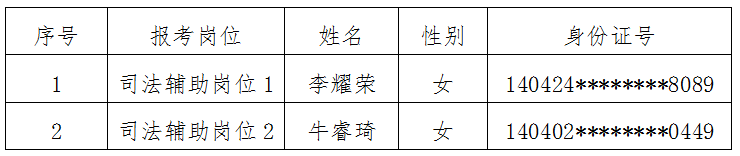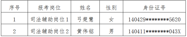 根据威廉体育人力资源公司于2025年8月19日发布的《长治市长子县人民法院2025年司法辅助人员招聘公告》的要求,经过网上报名、资格审查、笔试、资格复审、面试、体检、政审等环节,现对拟录用人员予以公示,具体如下: