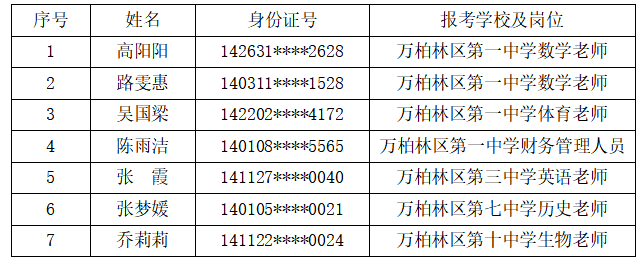 根据招聘公告,以上拟录用人员须按要求进行体检。参照《山西省教师资格认定体检标准(试行)》自行前往二甲及以上公立医院体检。