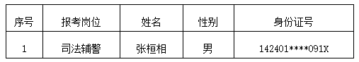 按照威廉体育人力资源公司于2025年10月14日发布的《山西综改示范区人民法院司法警务辅助人员招聘公告》(项目编号:XFYZP-2025TY074)的要求,经过网上报名、资格审查、初试、资格复审、面试、体检等环节,现对拟录用人员予以公示,具体如下: