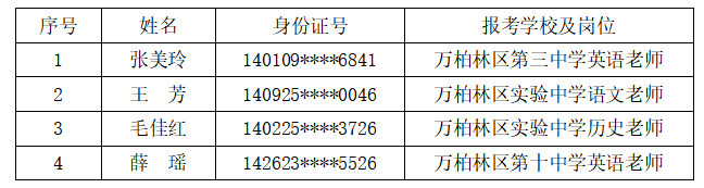 根据招聘公告,以上拟录用人员须按要求进行体检。参照《山西省教师资格认定体检标准(试行)》自行前往二甲及以上公立医院体检。