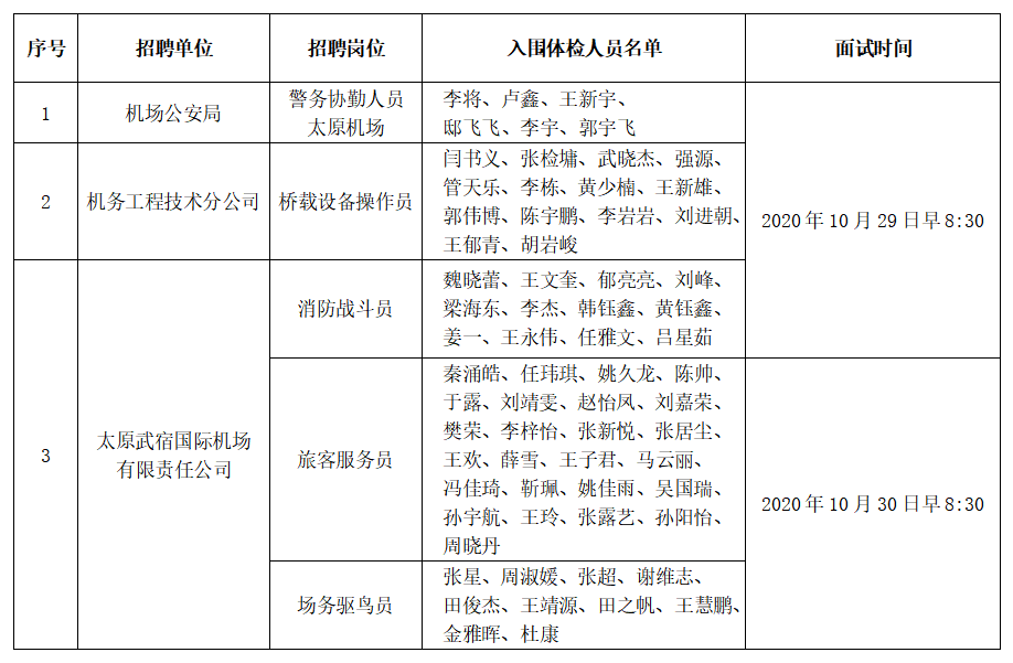 根据山西航空产业集团2020年公开招聘劳务派遣制工作人员的要求,现就体检有关事宜通知如下: