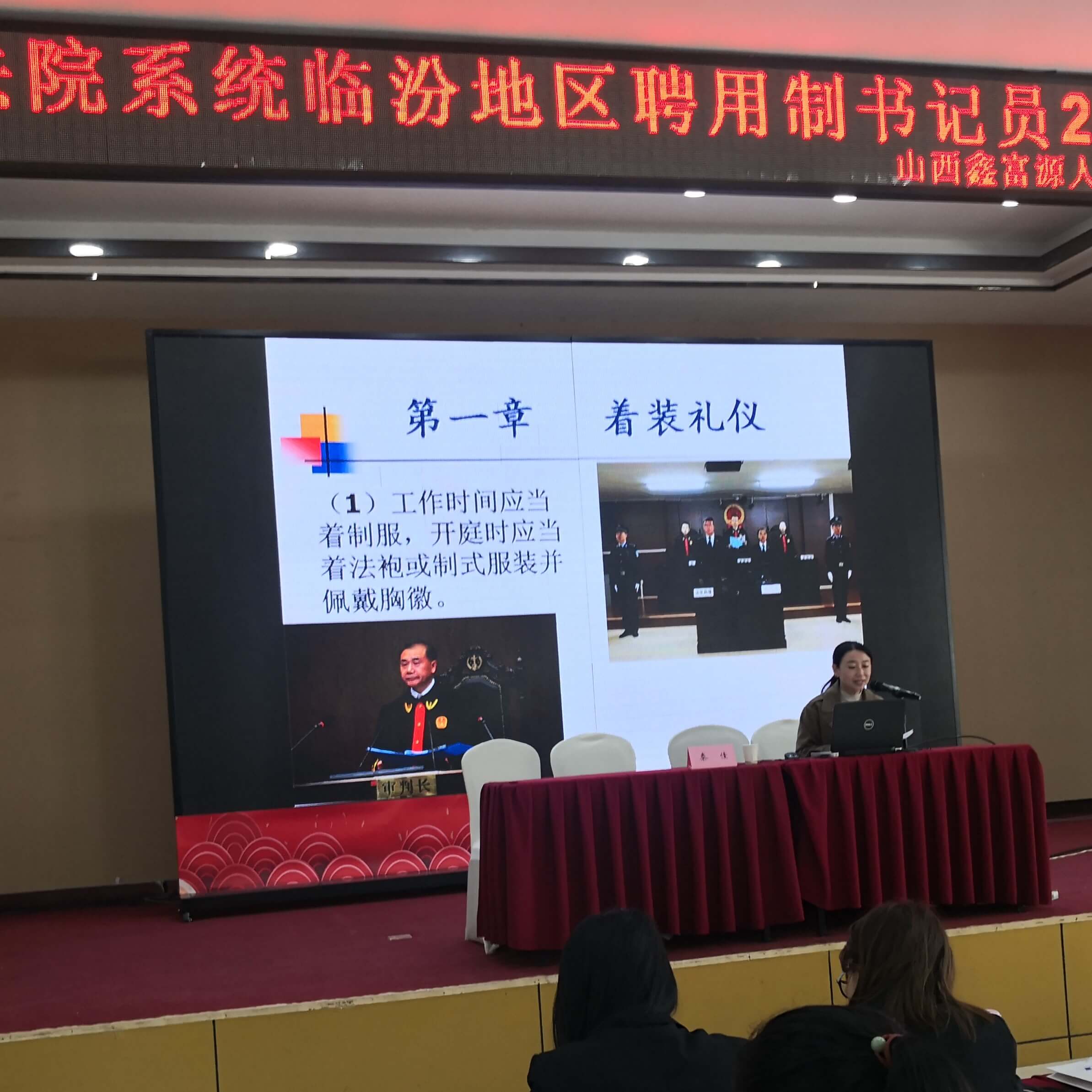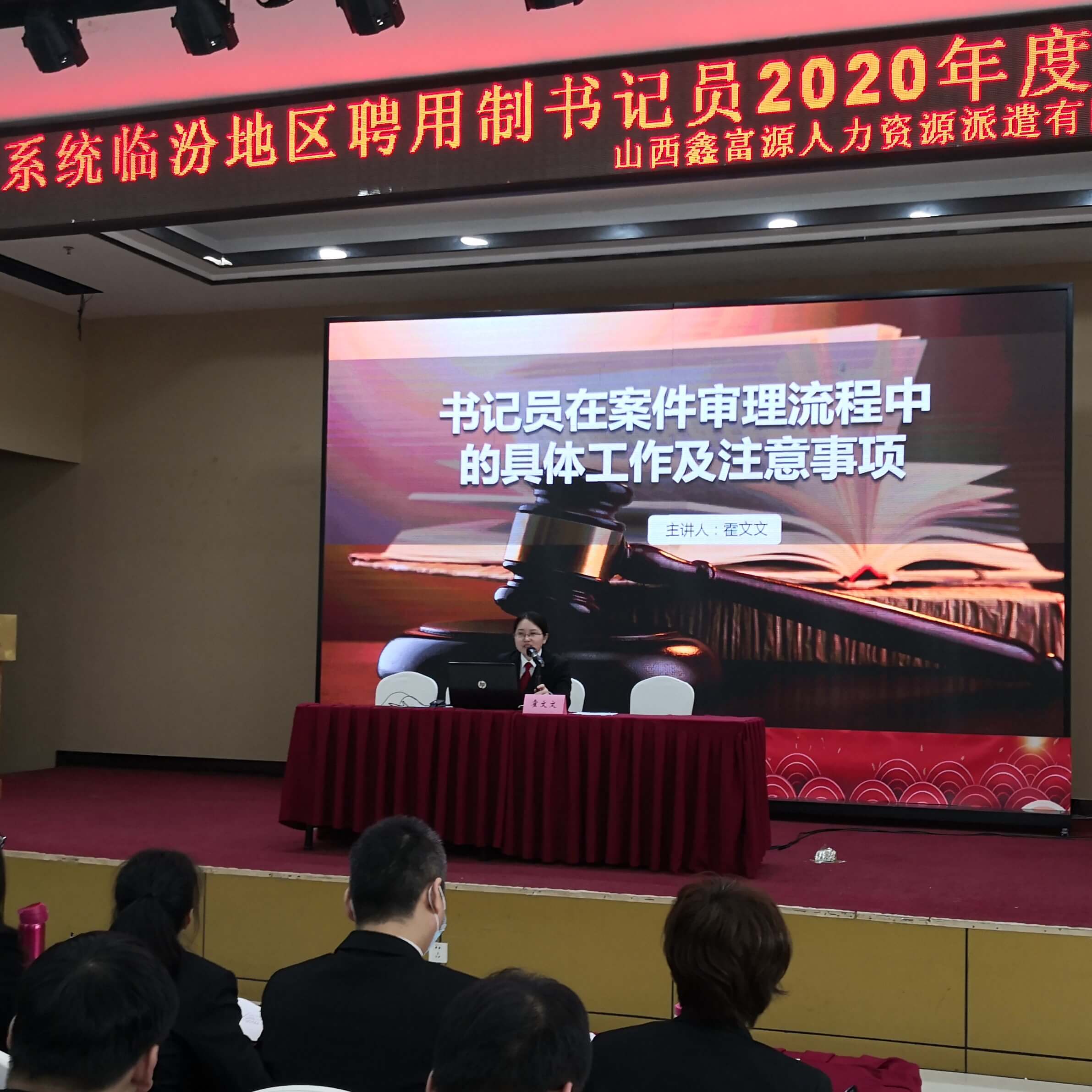 为进一步提升聘用制书记员队伍的专业水平和职业技能,更好地服务于审判执行工作,2020年10月30日到11月1日,由我公司组织的全省法院系统临汾地区两级法院聘用制书记员2020年度培训工作在临汾市尧都区平阳北街思麦尔酒店全面展开,全市304名聘用制书记员共同参加了此次培训。