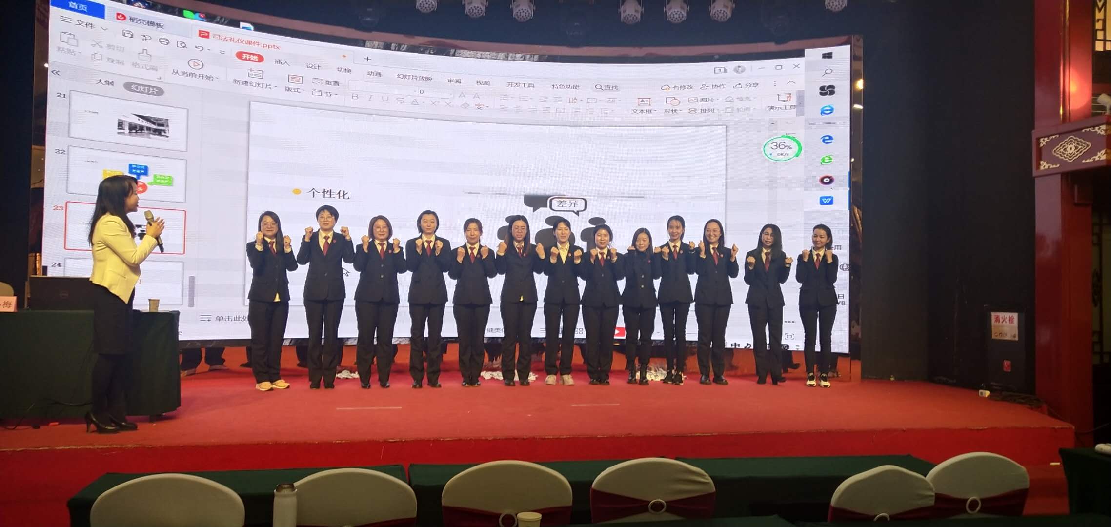 山西威廉体育人力资源派遣有限公司晋北区域总监刘莉代表公司进行了致辞。她首先对法院领导的关心与帮助、对书记员们的支持与理解表示了感谢,并要求大家要充分认识到书记员工作的职责与义务,从每一件小事做起,以高度的责任感和使命感完成好这次培训。