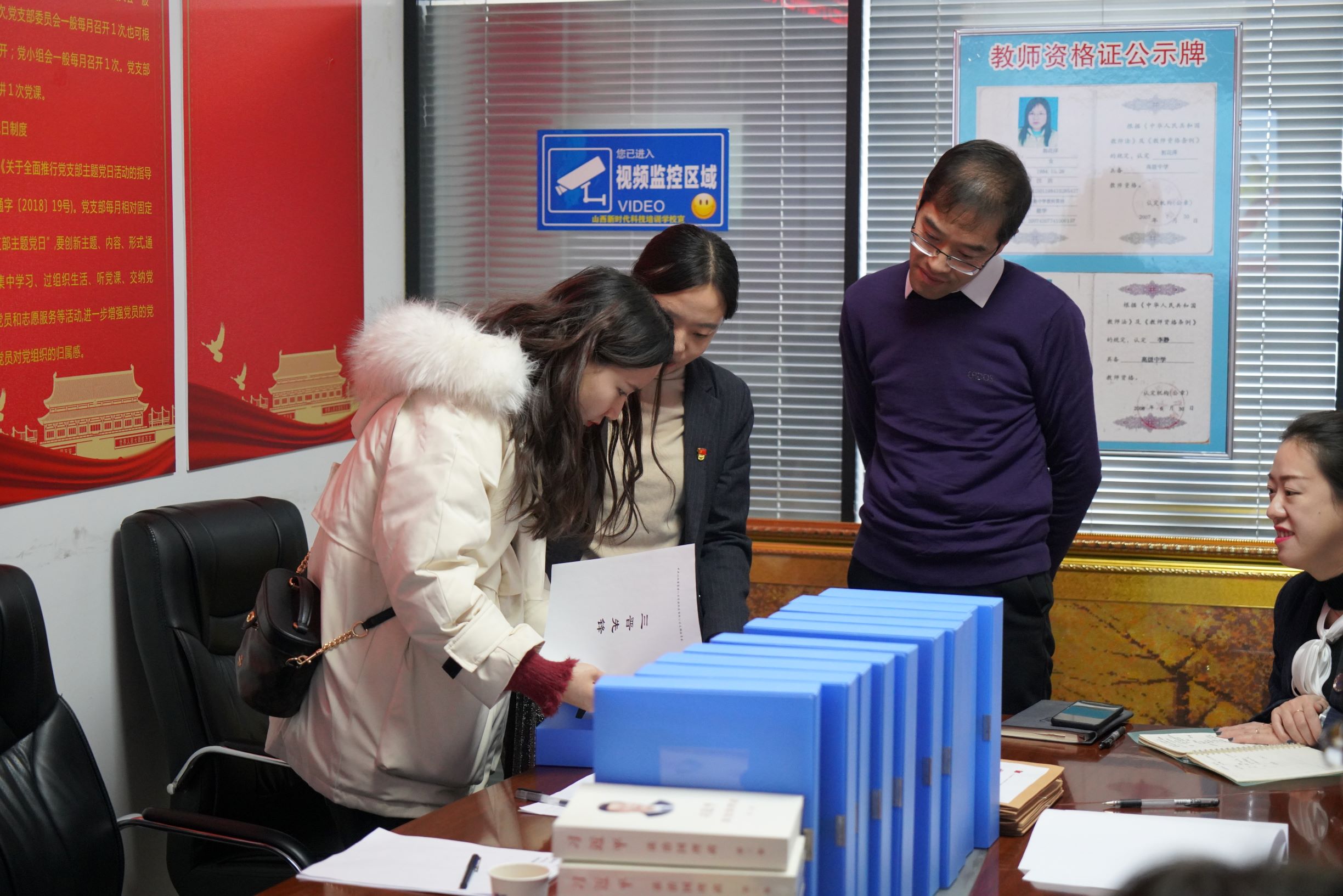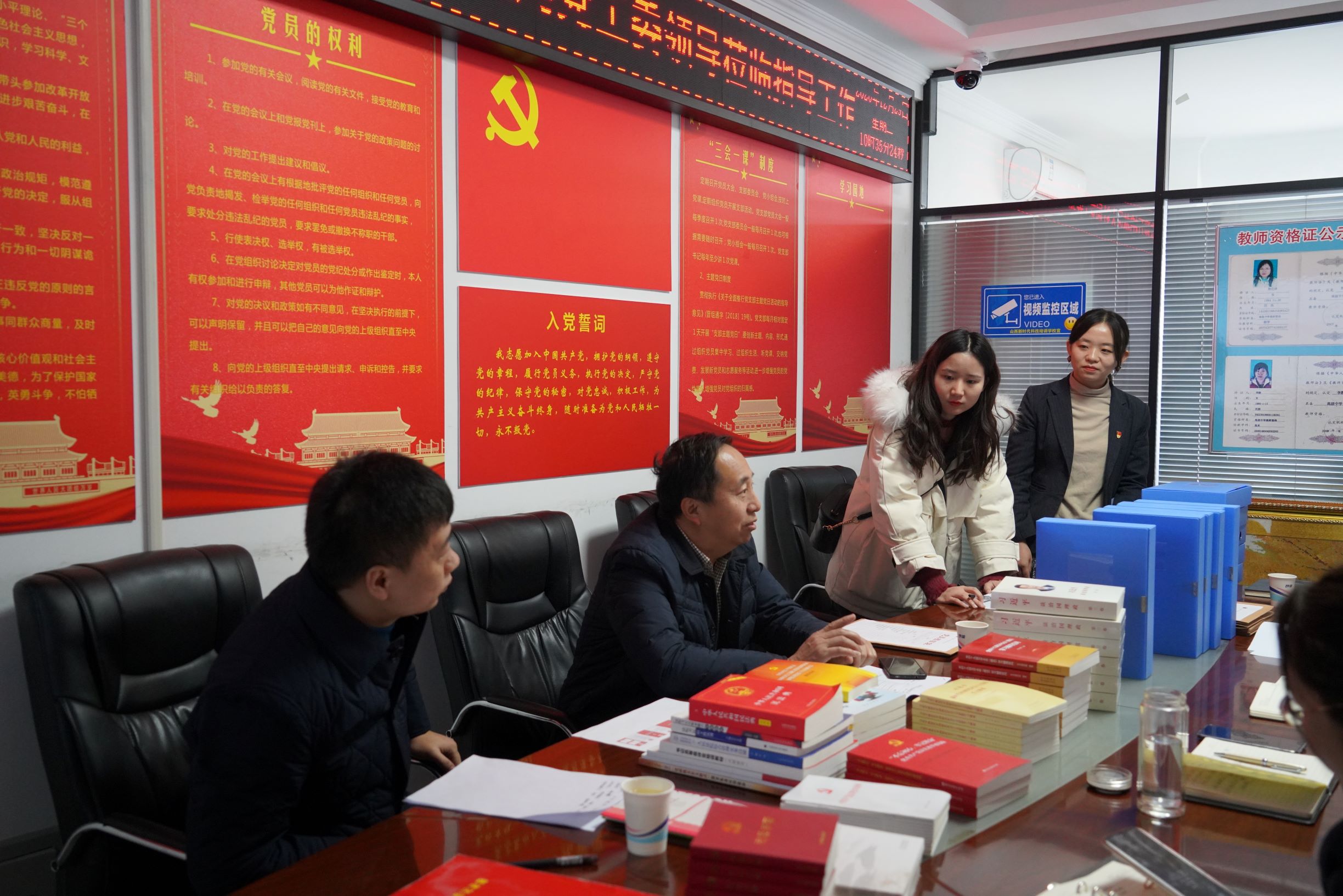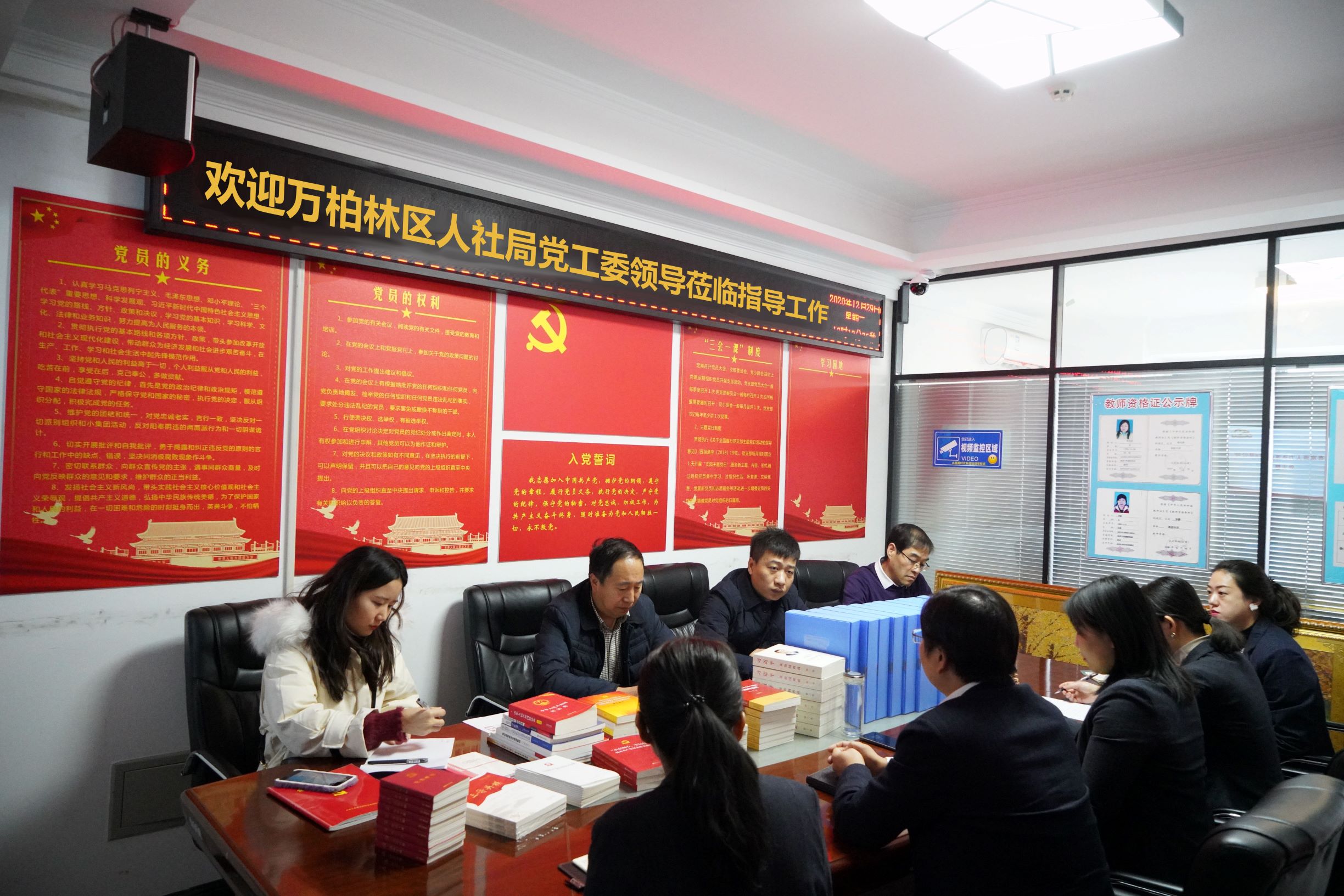 刘双海局长一行在公司领导的陪同下参观了公司的办公环境,并就档案存放室、党员活动室的有关布置进行了检查指导。集团董事长韩红光简要介绍了公司的基本情况和近年来在业务领域取得的一些成绩,支部书记曹幸就2020年支部党建工作做了总结汇报。随后,刘局长一行对照指标对支部资料进行了检查。