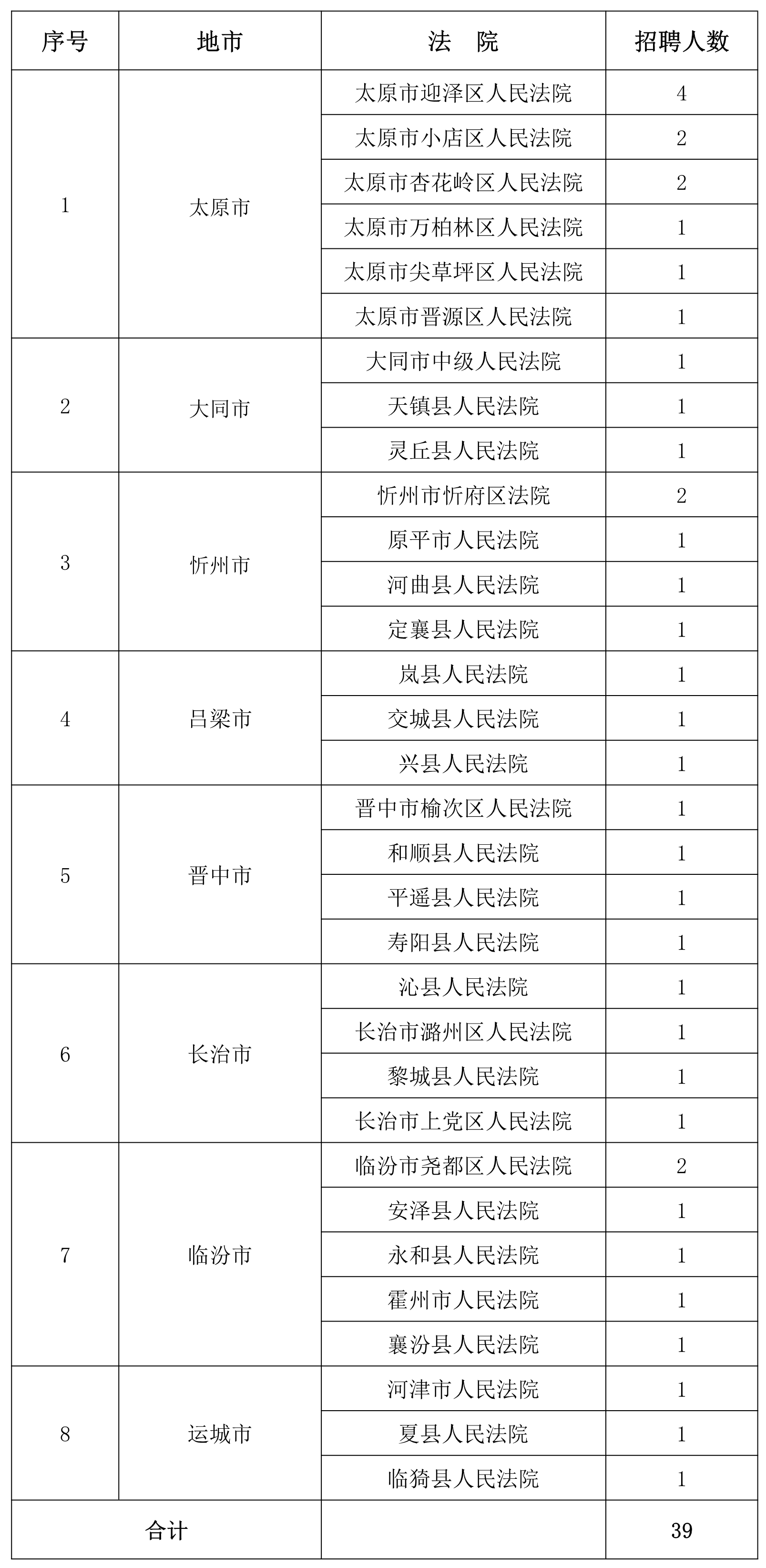 因工作需要,山西威廉体育人力资源派遣有限公司(以下简称:威廉体育人力资源公司)现面向社会公开招聘书记员39名并派遣至山西省各级人民法院工作。现将有关事项公告如下: