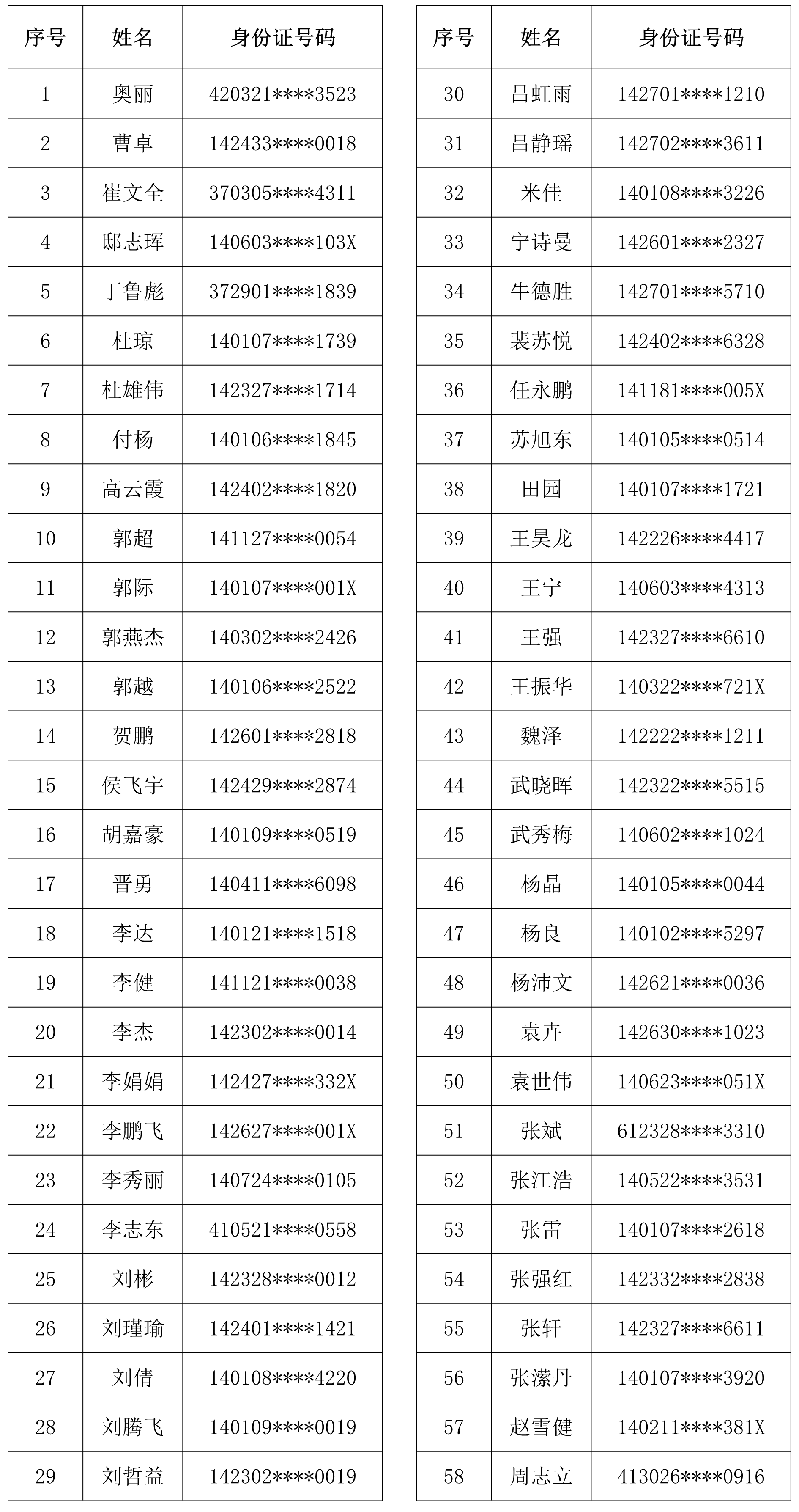 一、体检人员名单(按姓氏拼音排序)