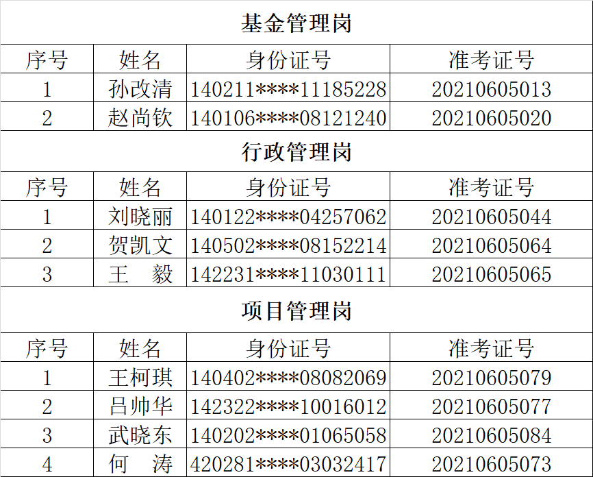 一、体检人员名单(姓名排序不分先后)