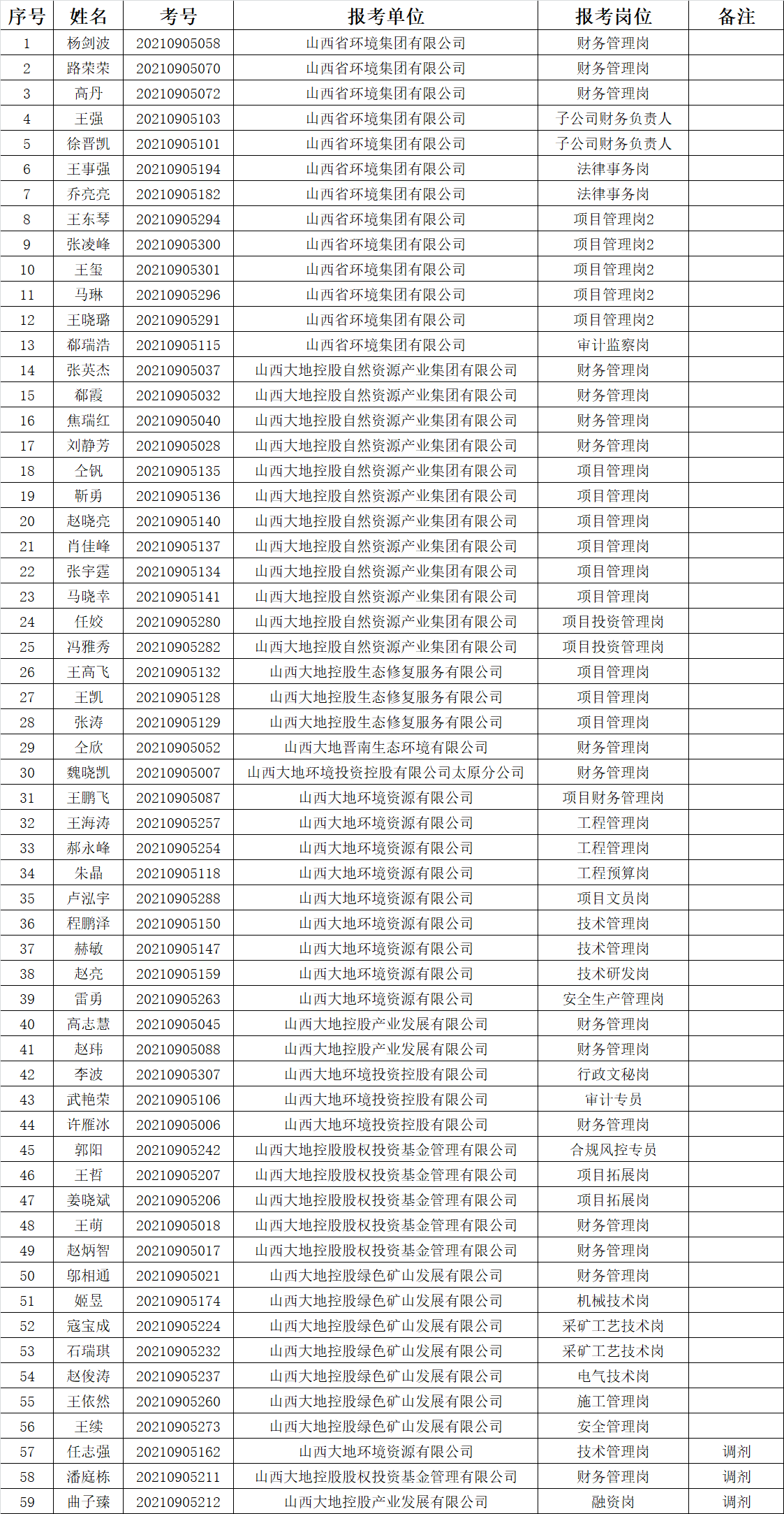 根据《山西大地环境投资控股有限公司及所属公司招聘工作人员公告》相关规定,现将面试成绩查询、体检等有关事项通知如下: