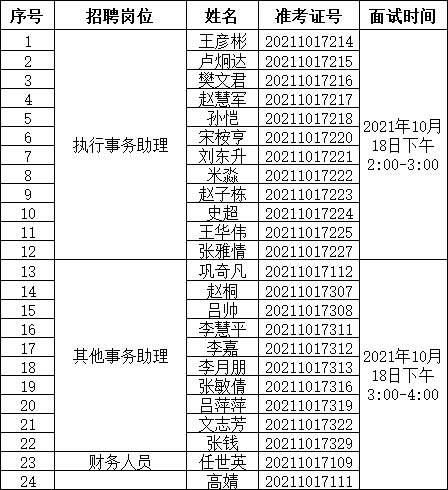 根据威廉体育人力资源公司2021年9月30日发布的忻州市忻府区人民法院公开招聘劳务派遣制司法辅助人员招聘公告的要求,经过网上报名、资格审查、理论考试、体能测试、速录技能测试等环节,现就面试有关事项通知如下: