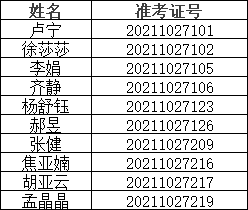 备注:名单以准考证号进行排序。