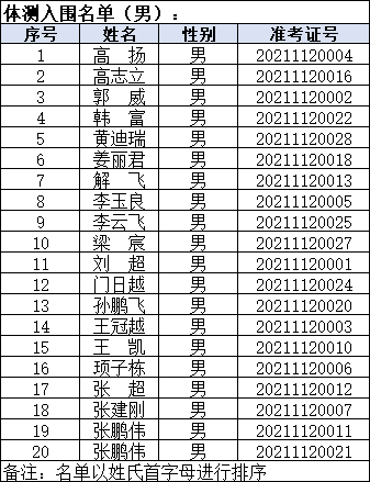 (一)考生需佩戴口罩,携带身份证、笔试准考证入场,未在规定时间内到场签到的,视为自动放弃体能测试资格。