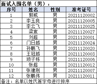 一、面试入围人员名单