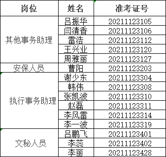 备注:以上名单按准考证号排序