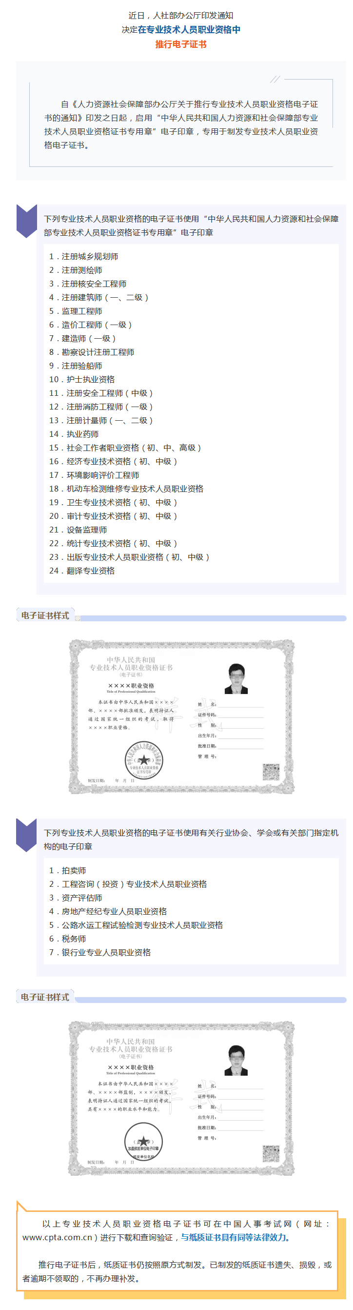 【一图看懂】便民!这些专业技术人员职业资格推行电子证书啦!
