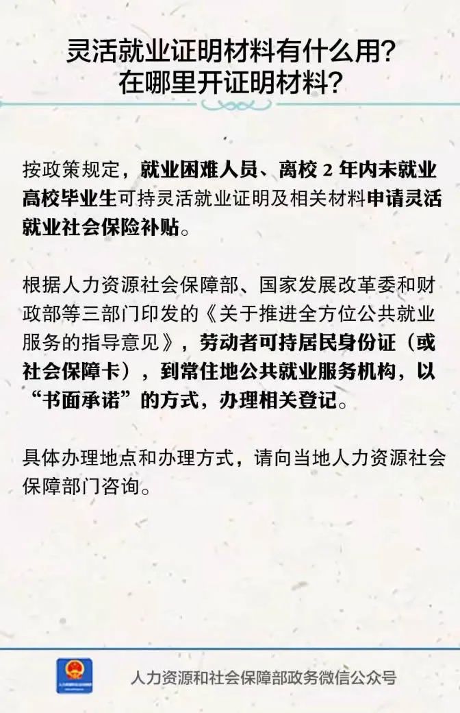 就业困难人员、离校2年内未就业的高校毕业生实现灵活就业的,均可申领。