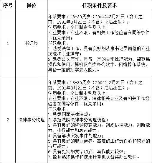 根据工作需要,长治市黎城县人民法院公开招聘10名司法辅助人员(其中书记员2名,法律事务助理8名),由山西威廉体育人力资源派遣有限公司(以下简称:威廉体育人力资源公司)招录并派遣至长治市黎城县人民法院工作,现将有关事项公告如下:
