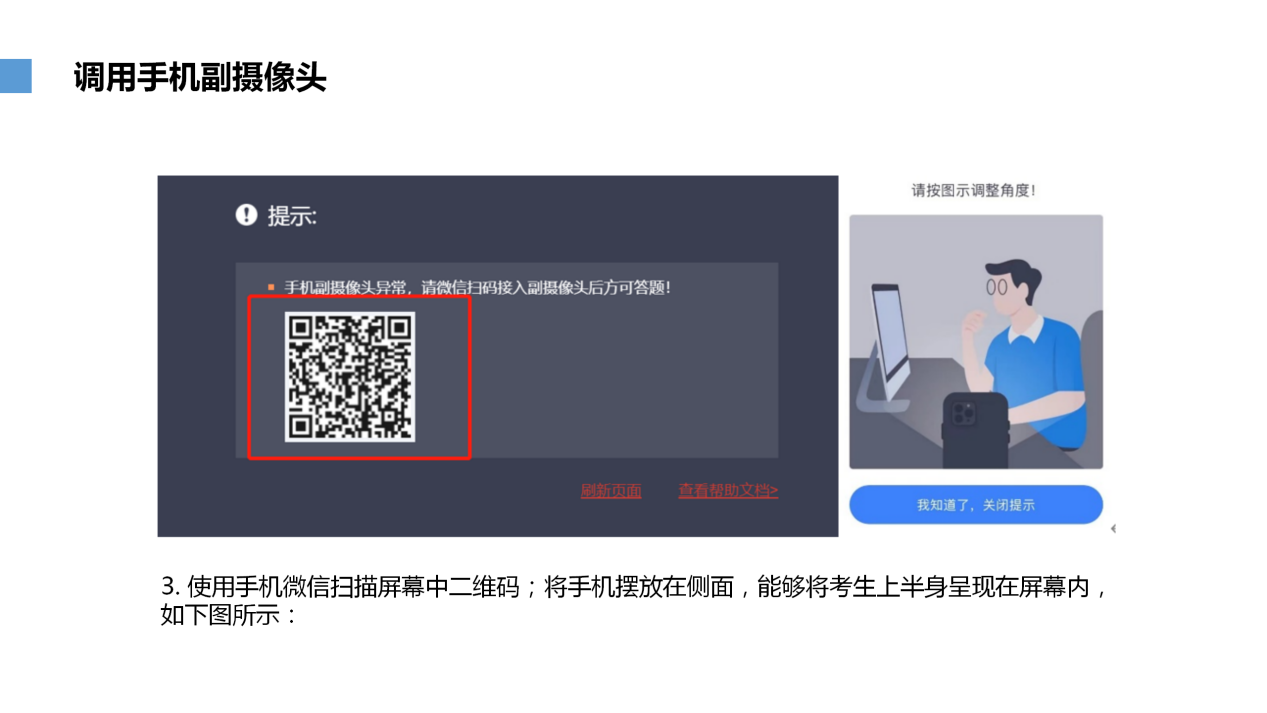 3、移动端与考生之间的参考距离为1.5米左右,具体可参照考生身高等数据调整。