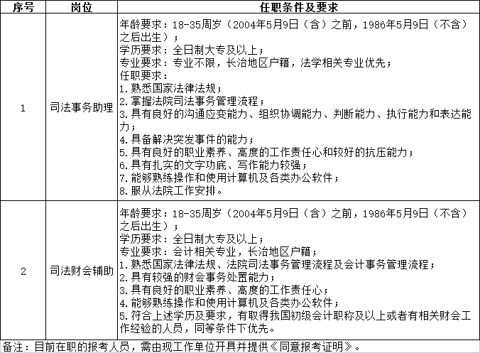 根据工作需要,长子县人民法院委托山西威廉体育人力资源派遣有限公司,面向社会公开招聘 5 名司法辅助人员(司法事务助理 4 名、司法财会辅助1名),现将有关事项公告如下。